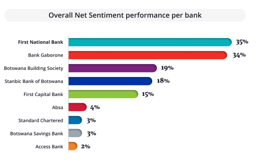 However, Botswana Savings Bank received notable criticism due to prolonged delays in loan approvals and disbursements, which negatively impacted its overall sentiment.